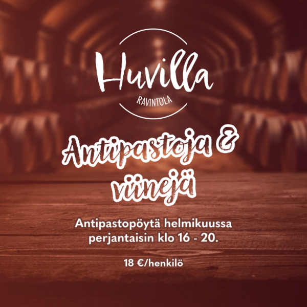 Katamme ihania Huvillan antipastoja noutopöytään nautittavaksenne myös helmikuussa! Tule pakkasia pakoon Huvillan lämpöön.