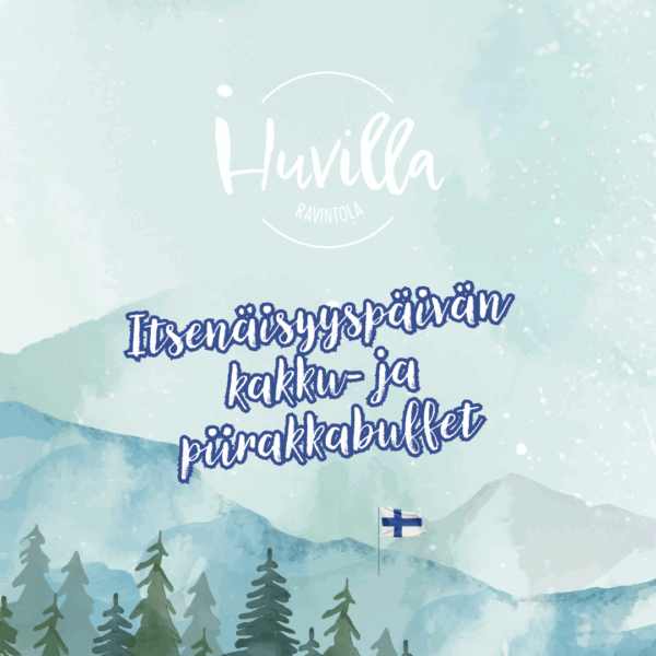 Poikkea juhlistamaan Suomen itsenäisyyttä Huvillan herkkujen äärelle. Ihania suolaisia ja makeita kakkuja- ja piirakoita buffetista sekä hyvää kahvia & teetä. Ja miksei myös vaikkapa lasillista kuohuvaa?